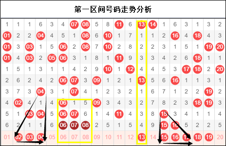 一区从目前的走势来看是比较喜人的,不仅仅因为前半部分走出了三角形的的06-07-08,而且后半部分形成了小三角的15-16,那接下来能不能走出15-16-17的大三角,应当是本期我们需要关注的一个走势。另外小号部分02-03-04依然是形成了间隔式的大三角形,这也将会是本期特别关注的。除此之外,在已经形成的的三角形区域能不能再进一步加深,这就需要大家及时关注个别号码了。