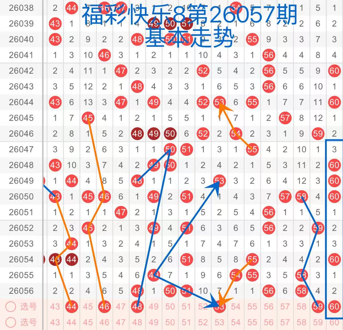 26057期福彩快乐8,走势综合分析(本期一胆参考53)