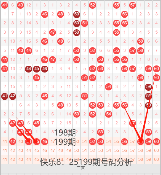 三区间41-60号码球走势,如下图: