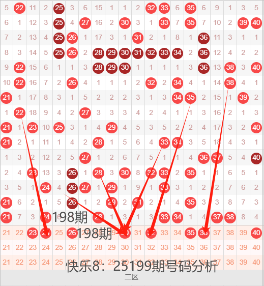 二区间21-40号码球走势,如下图: