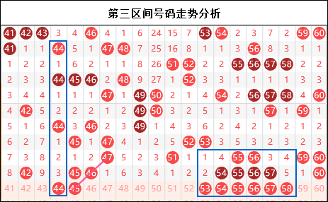 第一区间思路:一区几乎是走了一个奇迹的号码,在所有人的期待中一区直接放冷枪,仅仅开出三个号码。本期一区单从局面上看,依旧不是一个号的区间,毕竟走冷之后能不能回补是个问题。而目前的走势面临的基本都是斜连走势,大家都知道斜连走势在整体的布局中并不占优势,所以一区风险依旧。