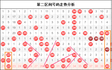 第二区间思路:二区给大家直击21和35组合,可惜下播的时候老赫自己都忘了做了,有点遗憾。所有号码全部按照预定路线出现,那今天在这个走势基础上,我们给它进一步深化改造,争取将二区走势一网打尽。