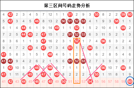 第三区间思路:三区开出五个号,全部是邻号,邻号终极目标是走势为王,那基于当前的趋势,走势为王究竟能走出几个号码?在这里千万不能被走势所迷惑,众使这里纵横交错,但依然万千小心,更多思路个人认为会偏向与一半走势一半连号的形态。