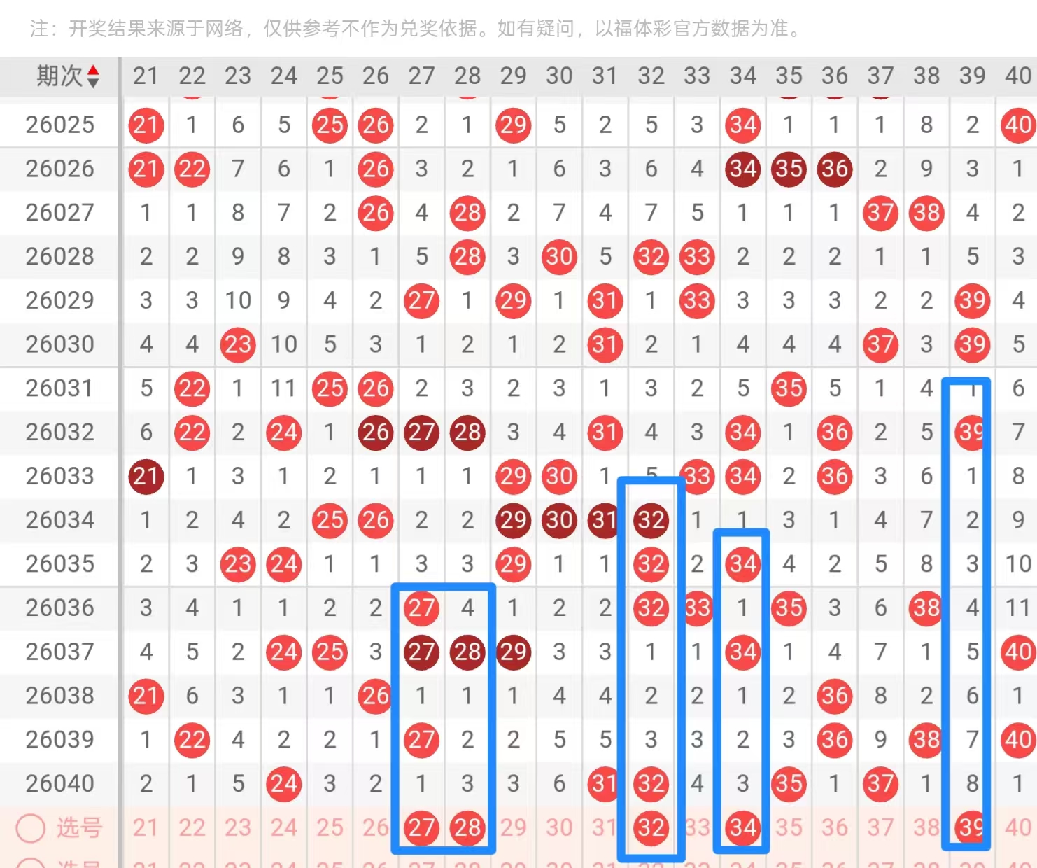 二区21—40: 上一期2字头只给到了24并且是孤码,那么它跟上面是反型的,按具体的思路点的话,不建议大家去考虑做重的,但是这种号码也并不能作为杀号去扔掉,正常来说的话,作为防守即可回到中间部位上面,在24 31的跨度里面最多咱们做到3码就行了,不排除以对子的形态去看这个带这个区间最少27和28,大家可以正常去选择,重点的话3字头上一期是热区间,如果大家觉得遇热打热的话,可以往这边的情况当中去靠的话还是可以参照形态去打重码的,32以及34的三斜连,尾部上面只需要去考虑39一码即可