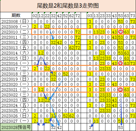 尾数2-3区间:尾数2在近20期内都是浮动走势,