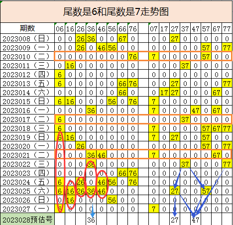 尾数6-7区间:尾数6近期开奖号码次数多到走势混乱,
