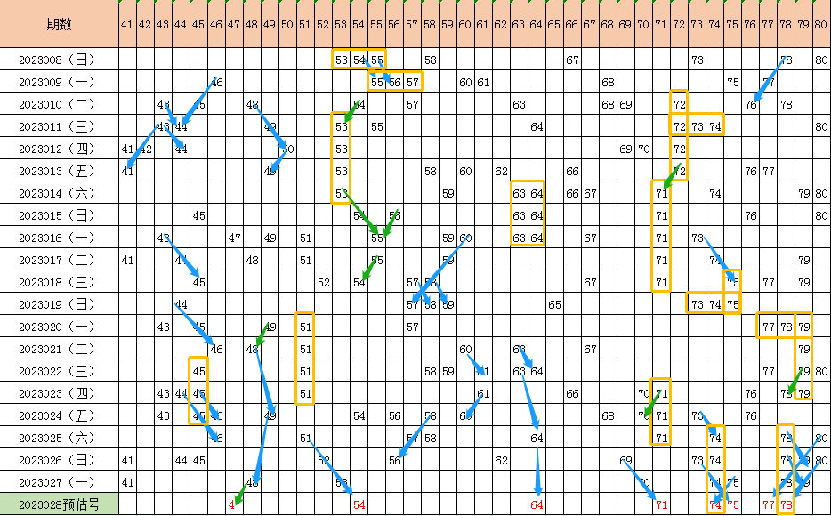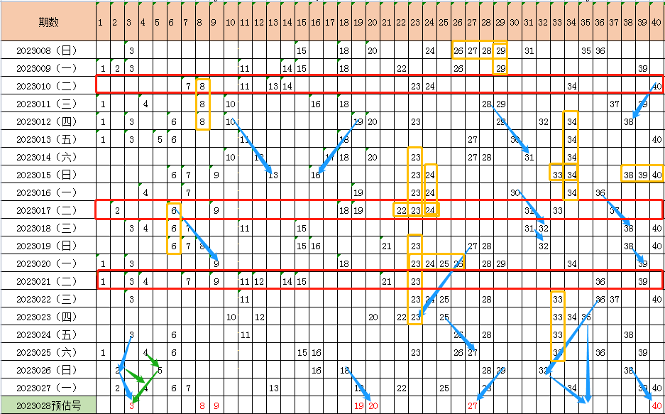 本期我觉得可以重点关注斜开走势和同周期号码走势,