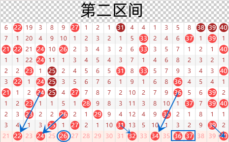 该区间的24号数字我们要注意一下,三斜连顺着下来的号码,出号机会还是有的。本期的26号数字我们做一下防守号码,梅花号码有几期没有出了,本期有机会出来的。本期的31号数字我们要注意出重的情况,本期的34号数字我们也是要关注一下,三斜连号码34 35 36还是有机会形成的。本期的36号数字我们要关注一下,毕竟上期开出了45 54号数字,有可能会把本期的36号数字带下来的。