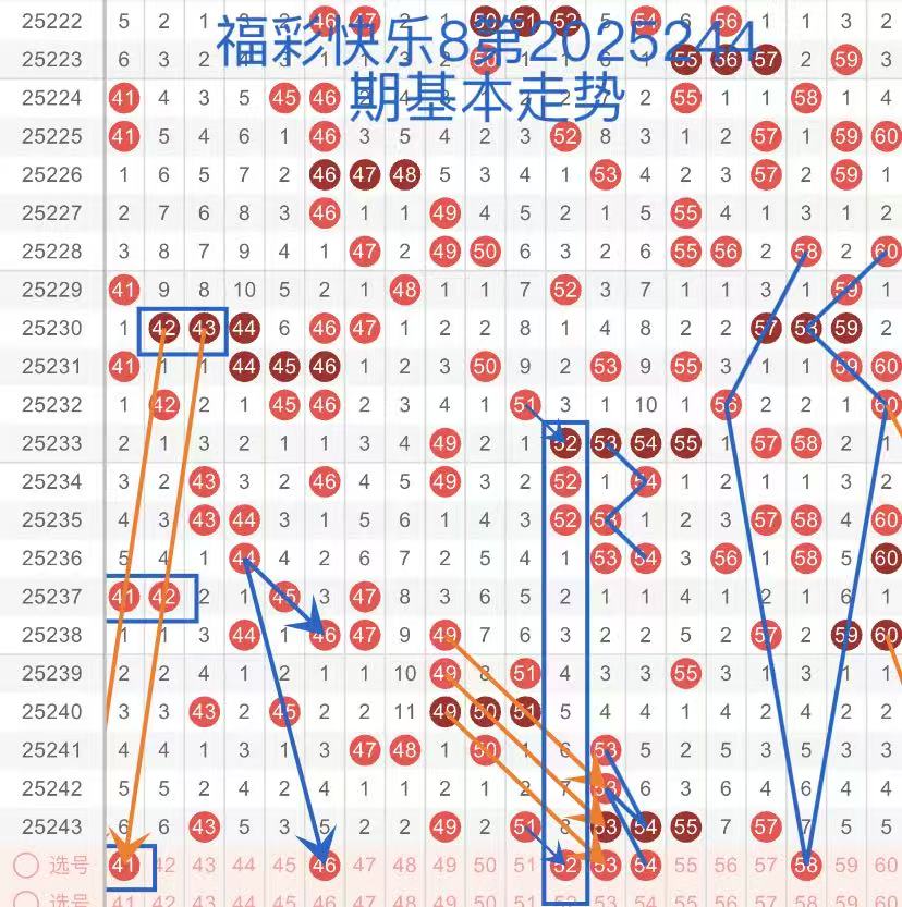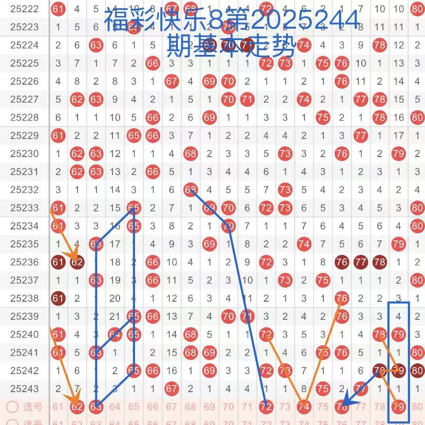 下面是我对2025244期福彩快乐8的分析和预判,希望通过我的分析能让大家今晚大满贯!福彩快乐8上期开奖号码如下图
