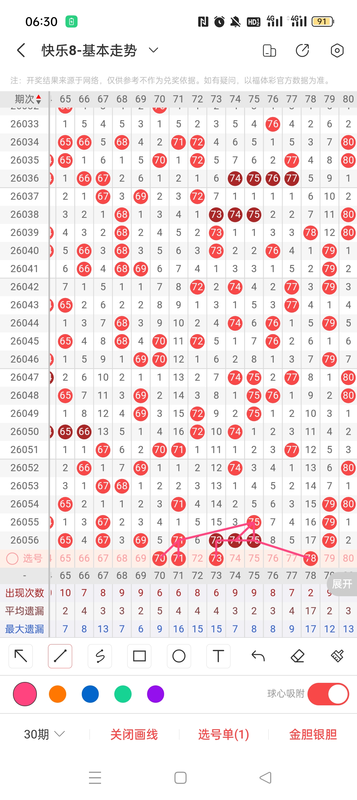 6、分区法:快乐8共分为4个区,一区:1-20,二区:21-40,三区:41-60,四区:61-80。