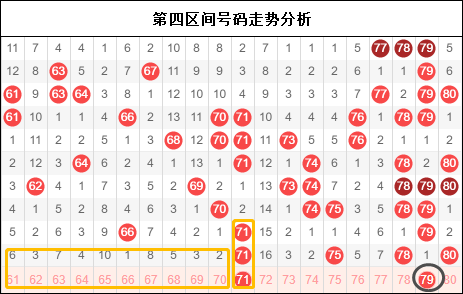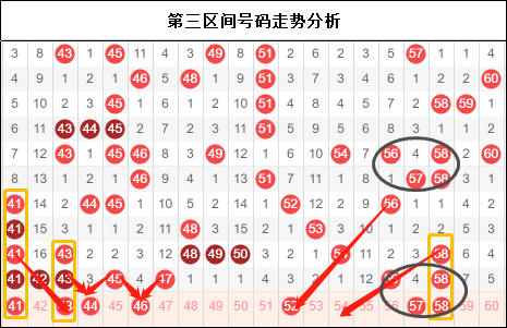 第三区间又是一次重点区间,这一次终于是让它无所遁形。提前的布局在这里还是提现到了一点价值,遗憾的是44和48没有出现,不然这将是今年第一个不错的布局。但是这样的走势正式体现出了三区目前的重要性,接下来号码出现向两边分化,中间落下了大片的空白区域,需要引起大家的注意了。