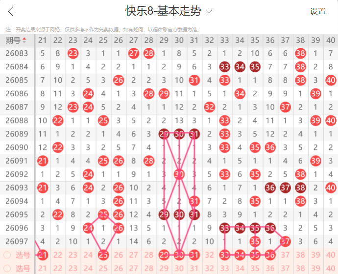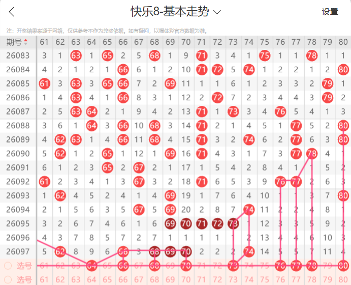 接下来为大家带来快乐8本期号码走势分析,供各位参考。