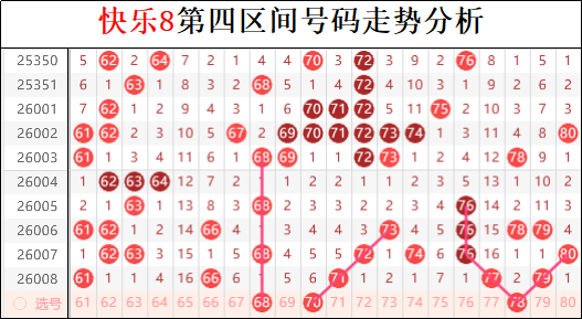 四区上一期是最失误的区间,随着冷码的现身,导致我们的主打走势直接做了擦边布局,这也是上一期最遗憾的地方。目前四区冷码下拉不走重号,这一点一定要注意。不过四区在经过连续两期的七码之后出现降温是对的,那本期随着四区失去了重号和连码的走势,能否在走势上出现回补还是值得注意的。回补的节奏虽缓但势不可挡,尤其要警惕61-63、70-72两组连码结构悄然成形。70作为关键中位号已空降六期,大周期冷转热信号初显,极有可能成为本期破局点。同时关注68与77的同尾呼应,防范冷号74斜跳反扑。尽管四区整体趋冷,但一旦回补必是“连带+跳号”齐发,,形成多点开花局面。建议采用“冷热对冲”思路,以70为核心胆码,搭配61、63、72布防连码链条,同时埋伏74、78等斜跳冷号作为奇袭组合。四区虽缓不弱,回补动能正在积聚,切勿因短期低迷而忽视其爆发潜力。