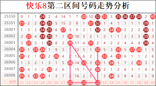 二区上一期虽然回补了连码,但是整体上区间个数继续开出少码走势,所以接下来二区应该回持续一段时间的少码走势,这一点一定要注意,切不可着急回补号码布局。目前除了重号的走势,最明显的就是同尾走势的出现,尤其是后半部分孤码的下拉,是本期二区最需要关注的走势,不排除重号和分边一起现身。分边与连码共振,警惕25-26-27、30-31双线爆发。当前二区能量积压明显,一旦回补将是“连中带重”的典型结构,重点关注25、27、30三个关键点位,其中25作为隔期斜连核心,回补势能已蓄满;30则具备同尾+重号双重属性,联动31形成连码的概率极高。