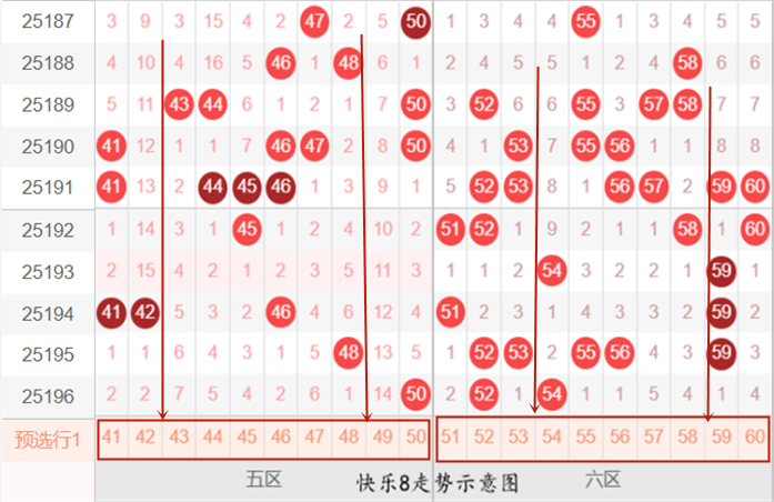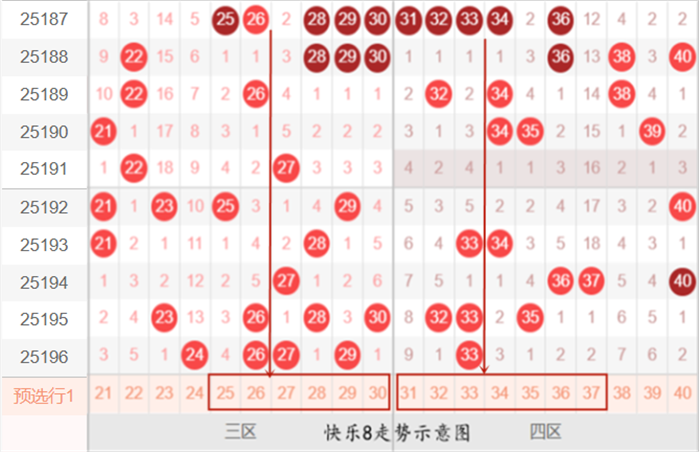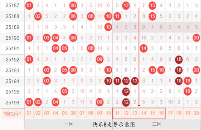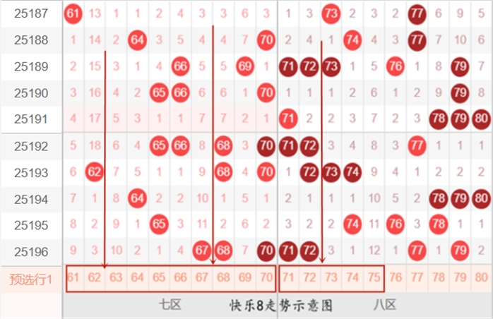 快乐8第25197期:冷热区间判断及号码分布推荐分析