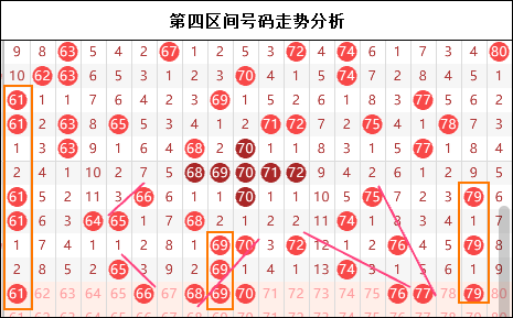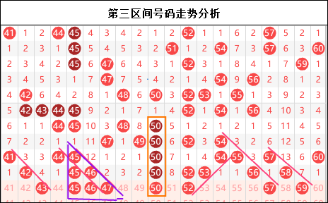 第四区间思路:四区果然走冷了,不仅把七字头搞丢了,在前半部分也仅仅出现了两个号码,更多的则是形态而非走势。而本期我们倒是希望在当前区间的周转之下四区能够回暖,但是大家不要忘记上一期有两个区间走出一样的号码个数,也就是意味着本期两个区间会出现角逐走势,孰强孰弱还是一个未知数。不过我更愿意在四区以形态的方式布局,毕竟大家都知道四区走势是很弱的。
