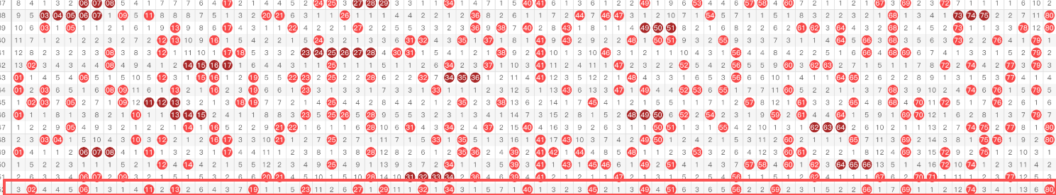 - 77:典型热号,近期表现强势,常与67、70等形成连号或邻号组合,是大号区不可忽视的“压舱石”。