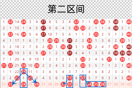 本期的22号数字是属于212走势,我们可以关注一下,做一下防守,出号机会还是有的。24号数字是属于梅花号码,本期的梅花号码有三个,我们要注意一下出一个的情况,重点关注一下24 48的出号情况。上期开出了31 33号数字,本期我们要注意一下这里出现一个重号的情况。本期的32 35 38我们要注意一下,还是有机会出一个号码的,它们都是属于2路号码,已经遗漏4期了,我们重点关注一下35 38的出号情况就可以了。