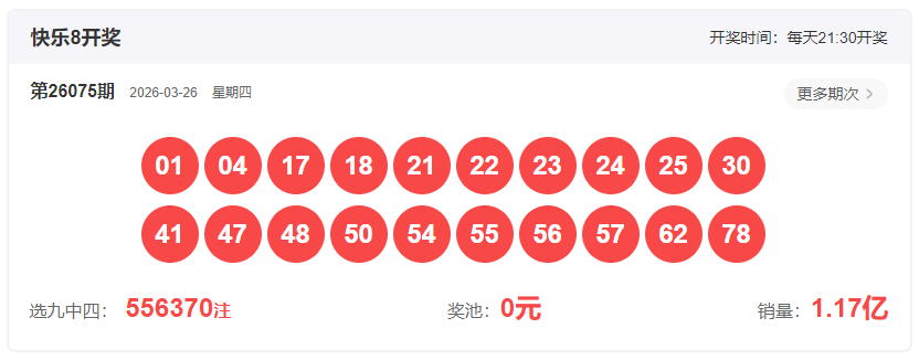 快乐8第26076期的分析如下: