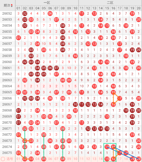 二区开出:17,18 奇偶比: 1:1 和值:35 跨度:1,上期开出个2号码,奇偶数号码均衡。呈现波动规律,显示二区进入高低交替周期,本期出号可能在2-3枚。形态上,连号退热后多为散号分布。
