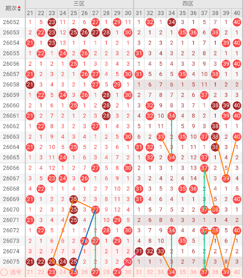 3-4区推荐号码如下:25、27、34、39