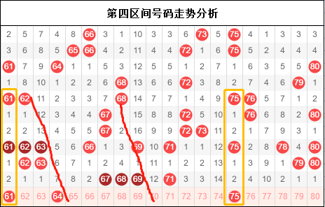 大家现在看到四区是不是有跟我一样的感觉---头疼,难以下手。昨天我们讲四区注意邻号和重号,那加起来就是连号,虽然昨天确实出现了连号,但是跟其他区间相比的话,在其他号码做起来有太多舍不得的号码,唯独四区每一次做号就跟便秘一样,想下却下不来。但是我们不能否认,四区近三期的号码开的确实不错,如果一个区间连续出现连号,虽然没有走势可讲,但你一定要认真对待了。因为前期的冷注定了现在的走势,前面没有出现过的,现在可能就是回补的机会,这叫趁人不备,出其不意。你何不将计就计,歪打正着试试。