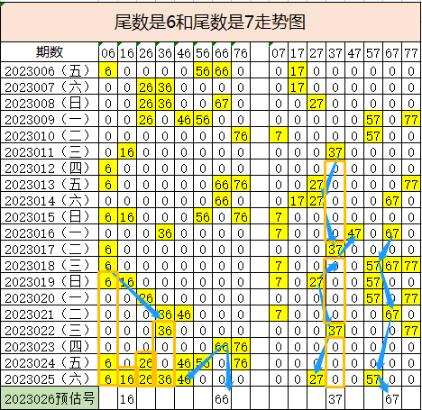 67和57,77也有着类似的走势,结合两个走势,这个尾数可以预测37和67,