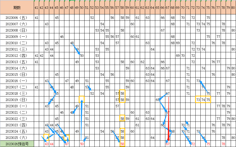 23的开出必定同期连号开出,,而在近期的走势尅看到43往回斜开:43,33,23,