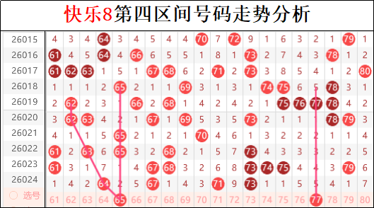 四区上一期仅以四码收场,这个走势实际上是符合多码转少码的思路的。尤其是三连码的下拉,直接破了三重走势出现了独立形态的布局。目前龙头凤尾再次放空布局,中间布局上又缺少了连码的下拉,所以本期四区作为少码区间的走势,本期不排除再次出现局部放空的局面,也就是说本期四区偏区的走势回很严重,要么前断要么后断。不过从形态的角度来看,本期四区首当其冲要注意重号的继续发力,尤其是上一期孤码的放空直接蒙蔽了所有人,本期四区再次释放两个孤码的走势,必然会有一码是下拉延续的。→但!真正杀招藏在斜连闭环里——67-69这组斜连不是偶然!具体布局思路请移步专属全方位分解。