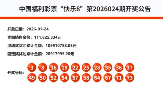 首先我们来回顾快乐8第2026024期开奖号码: