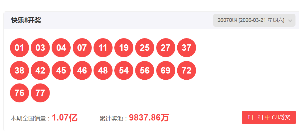 “专注快乐8,开心快乐吧!”您好,我是九尾锦鲤,有幸与您在这里相遇。上期(快乐8第2026070期)分析和推荐部分正确!今天组号上会继续努力!小车方案已精选优化,期望对您今天的选号、组号有所帮助。下面是我关于快乐八2026年第071期的走势研判分析及精选推荐。