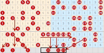 先来看1-20号数字区间分析如下图: