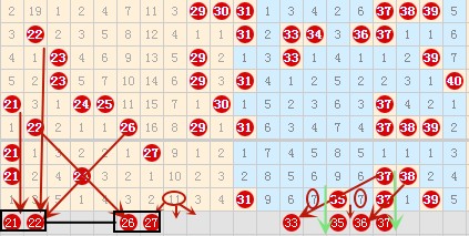 再来看21-40号数字区间分析如下图: