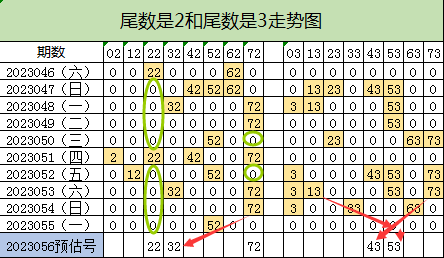 尾数2和尾数3号码走势: