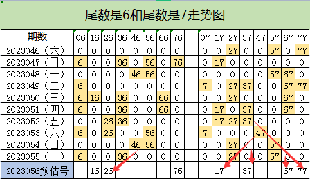 尾数6和尾数7号码走势: