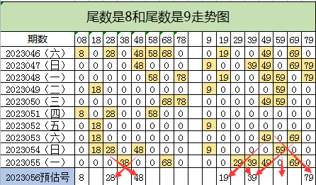尾数8和尾数9号码走势: