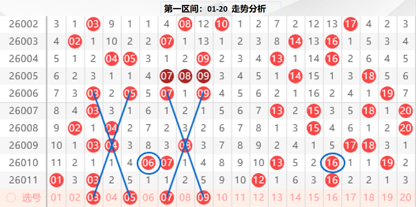 一区分析:【01-20】(走势图标注号码非小黄车大底,请谨慎参考,具体思路将在直播间分享讨论)