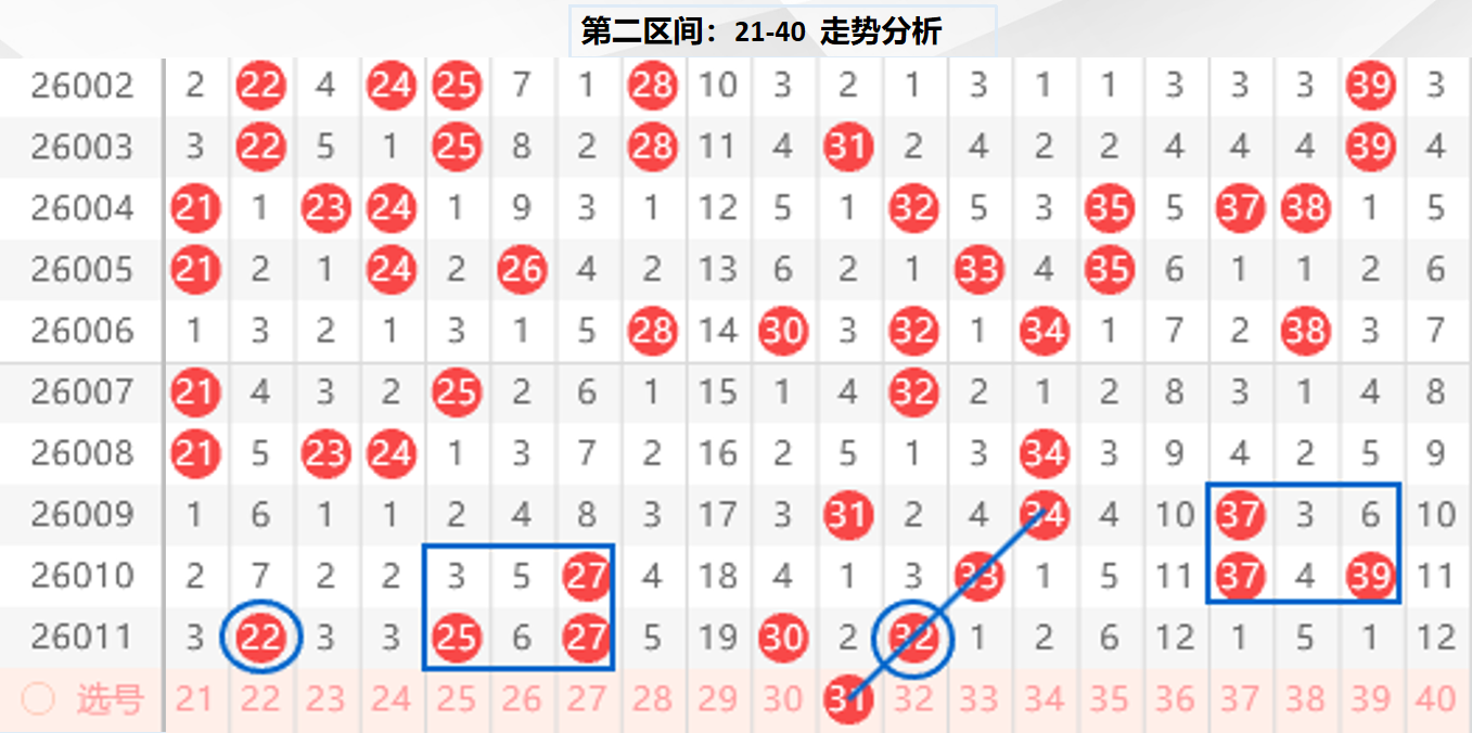 二区分析:【21-40】(走势图标注号码非小黄车大底,请谨慎参考,具体思路将在直播间分享讨论)