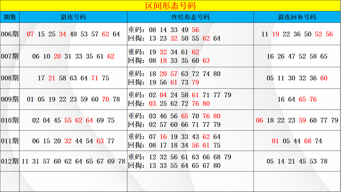 上期四区的整体开号中在区间的同形态下方依然是出号的重点,区间已经连续在同形态出现后做不放空回补,且区间在重码形态也是持续接力开出。从形态布局上判断本期重点,首先在重码的回补点位上还是要优先关注出号选择,其中前区的63 66 69三码中以近期在各个区间出现的同路全开做重码的回补中出号的机会非常大,重码接力可优先考虑这三码的择一选择,同时在结合三区的三同路出号中也要侧重在分边位置上的布局模式,形态布局上的重点主要还是围绕同路的几码下方做布局。而在后区中更多是考虑在空位周期上的回补,其中小周期在区间连续两期中断之后本期要重点关注回补选择,对应号码在71 72 74 75 76 77六码中,以断头斜连的回补对应点位以及在同形态76做放空的隔期回补中都是有机会开号,两个位置下方本期可各考虑一码的选择,回补周期开号的机会非常大。