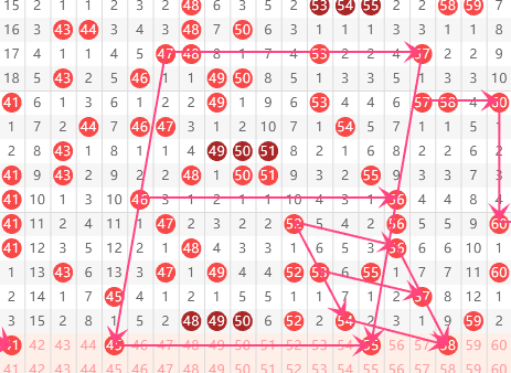 三区分析:【41-60】(走势图标注号码非小黄车大底,请谨慎参考,具体思路
