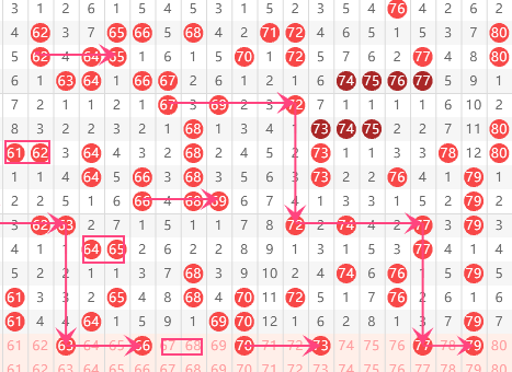 四区分析:【61-80】(走势图标注号码非小黄车大底,请谨慎参考,具体思路将在直播间分享讨论)