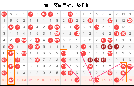 第一区间思路:一区还是轻敌了,出了我们预测到的重号加连号,心思太多考虑到了其他,导致主线丢失,偏离航道。而本期重号上似乎已经完成了使命,接下来真的是有点难以抉择了。不过细心斟酌一番,应该还是有蛛丝马迹可循的,至少留出了相当大的空白区域给我们发挥。