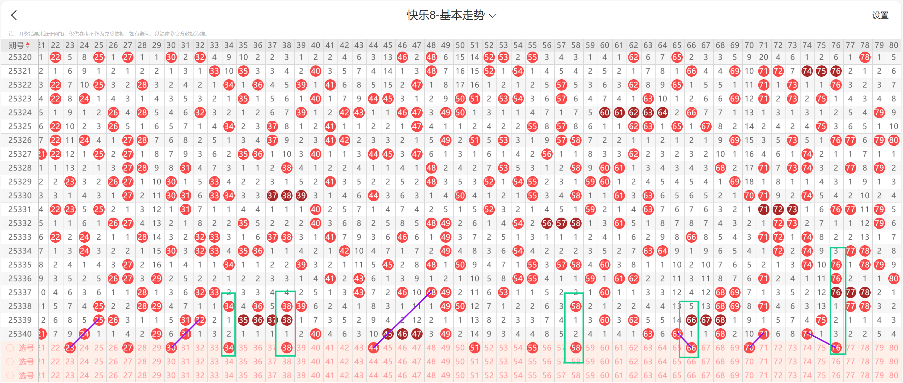 * **区域填空与聚焦**:62、64、66-67、69-70、72-73、75-80区域存在较多选择。本期可重点关注中部区域(70-77)的发力,如 **70、72、73、75、76、77**。