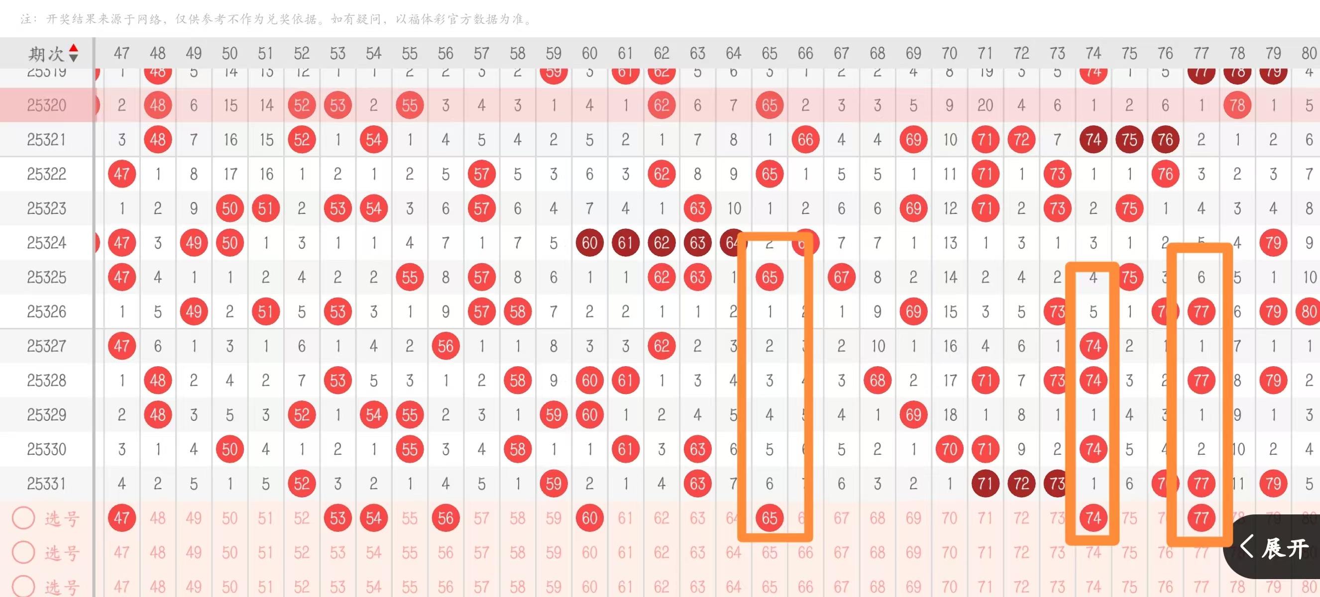 四区61-80:上一期的四区也是比较热的一个区间,7字头上直接回补了六码,那么如果说仿照3字头的话下面最多也就是1~2码,所以说本期去拿号的时候,尽量以7字头的连号不打冲为主去做分边,所以说七四,然后在形态当中7677两码的同开一包括77 79关联性的两码同时下号之后尽量做的还是去选择重码,个人在看号下号的点位上尽量还是以77的重为主。整个6字头,如果说去考虑一些东西的话,尽量还是做到两码,这里的空区太过于放空了而且给到的都是很干净的消耗点,这种抓号的时候相对来说比较困难大家量力而行。