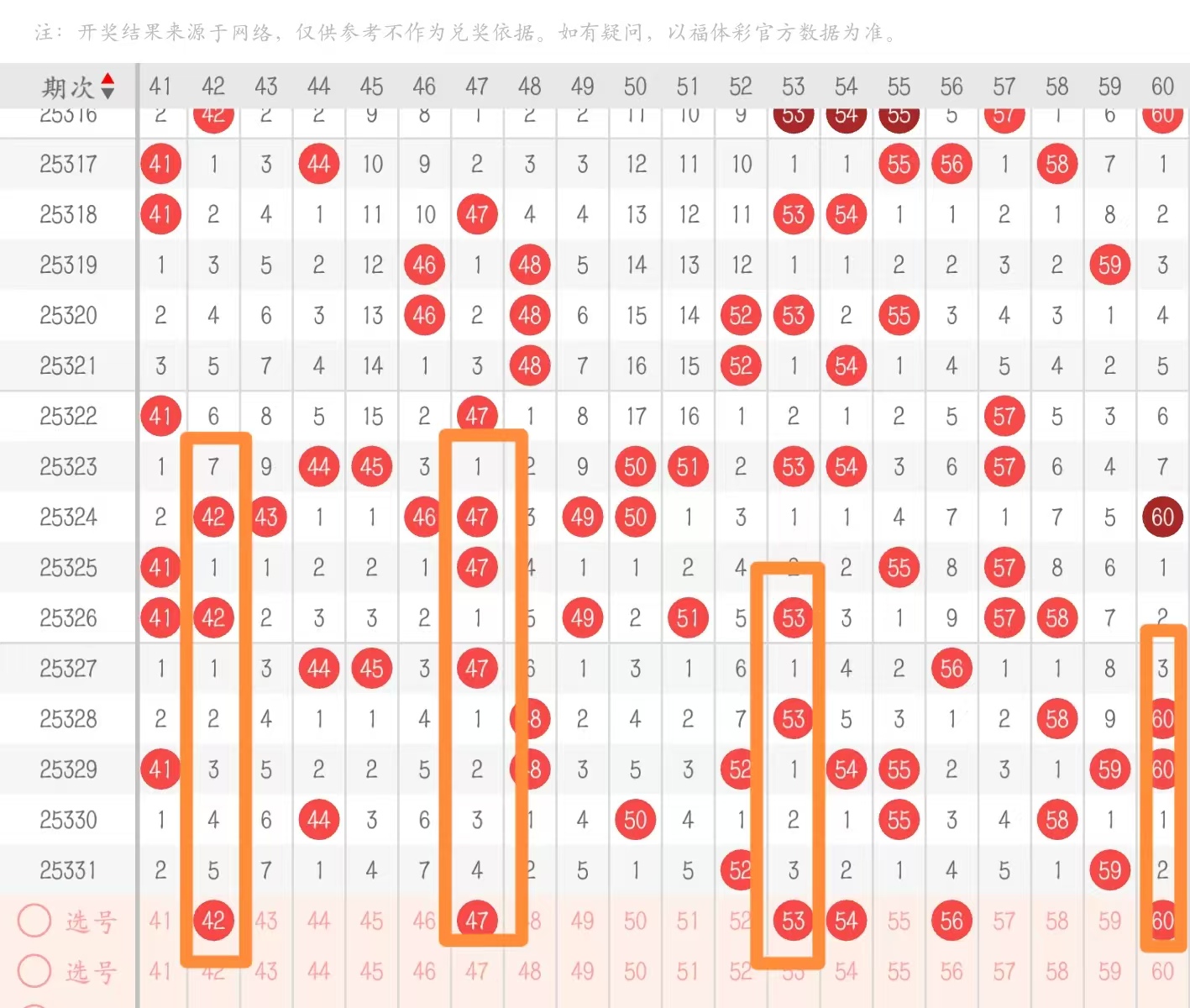 三区41—60:在形态特征当中三区目前是比较冷的区间点,在出号的同时也是伴随着将之前空区的区间给出的估码条件往回来带的情况比较像大面积反扑的前兆,但是做号的时候,由于空区本来就大在其中位置上要去拿的话,相对来说不是很明显,显得能够抓到,所以说本期在二下一的位置上去重点关注,比如说43 46以及42 49这种同期的二下一。53梅花的空三也是一个小分支点,这里想抓的话可以去选取,除此之外尽量的去做55双重的空一分边去选取号码。