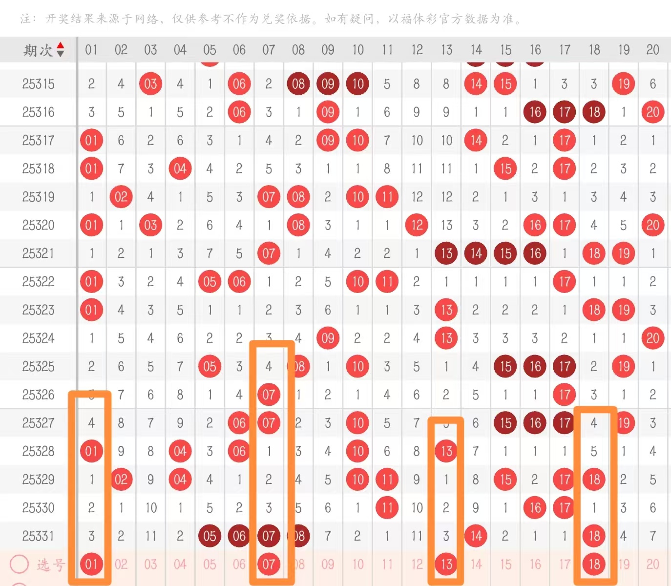 一区1—20:上期在0字头的号码给到了一个很干净的四连号,那么四连号当中重码是必备的条件性,本期在考虑走号的情况下,尽量以中间的重码为主,这样来说相对安全,除此之外回到龙头位置上只有零一的3期遗漏1一个下号的小关键信息点,其余的号码本期建议大家还是尽量少关注,然后在1字头上面一区的1字头近期走热了之后,短期都是以三两码去涵盖的,所以说本期大家在考虑的时候尽量以一重一分边去做,所以说这里的18的重码搭配上17的孤码分边13是一个很明显的下号组合特征。