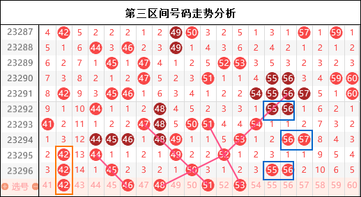 第二区间思路:二区昨天太看好走势了,而本期来看二区依然是明码标价的走势。但是本期二区有一个风险需要提醒大家,一个区间出现两个独码的下拉重号,整个区间出现三个重码,这样的走势说实话,说二区要断都不为过,毕竟三区已经实实在在用号码给我们上了一课。本期的重点我们就祈祷冷尾能转热吧,不然整个区间实在是找不到布局的主线。