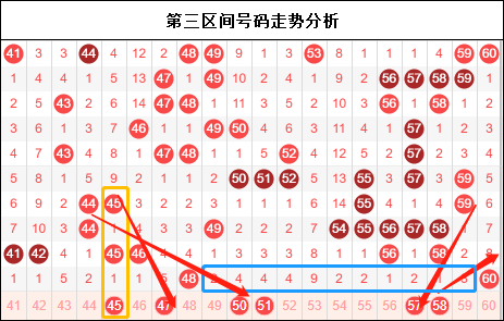 第二区间媲美第一区间,个数上也不错,走势上更是直接复制了上一期的开奖号码,让人始料不及,这种间隔式的三角杀居然完美的再现。接下来的走势与一区有异曲同工之妙,中间部分再一次的拉开,留下了同样无限的遐想。座椅提醒大家的这两条暗线大家一定是已经开始防守了,不能放松。