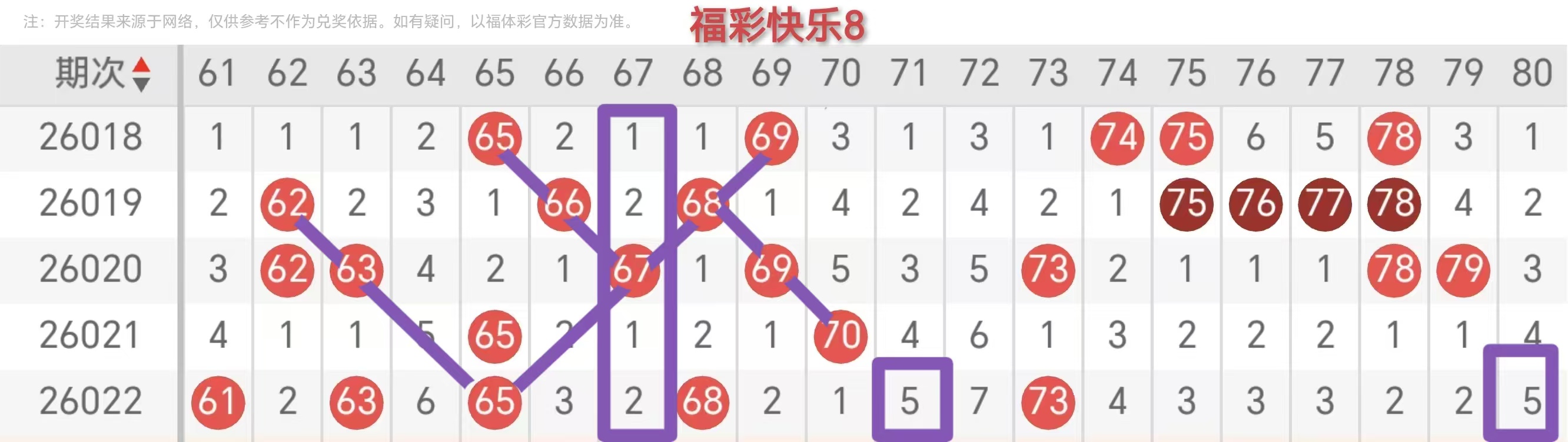 福彩快乐8第2026023期以上为个人统计,具体详细选号分析及购彩方案的推荐移步个人主页会员文章区!感谢粉丝朋友的一直支持和关注,祝君好运,下期再会!