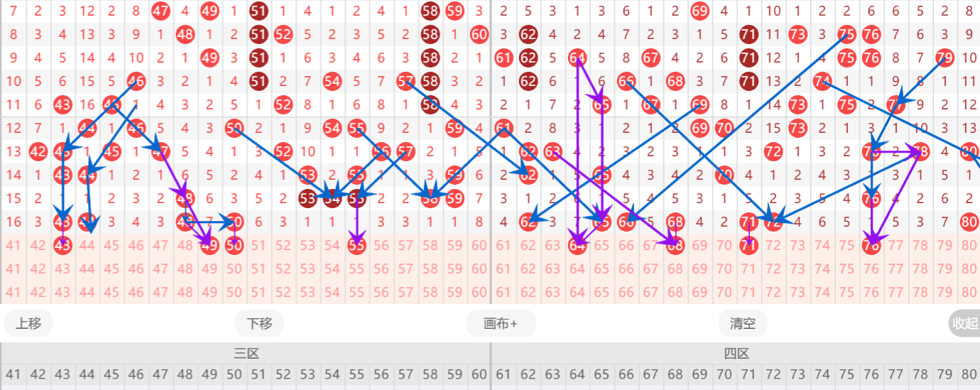 上一期第四区间开出:62.65.66.68.71.72.80这七个号码整体是热态,那么本期第四区间根据走势来判断我有以下几点建议。